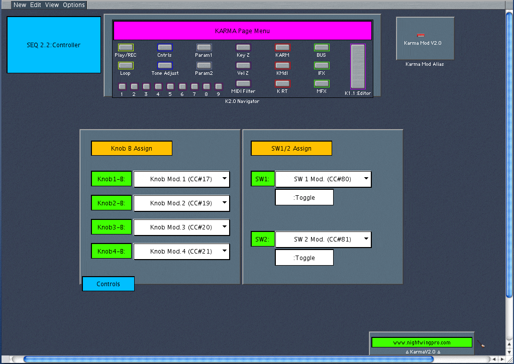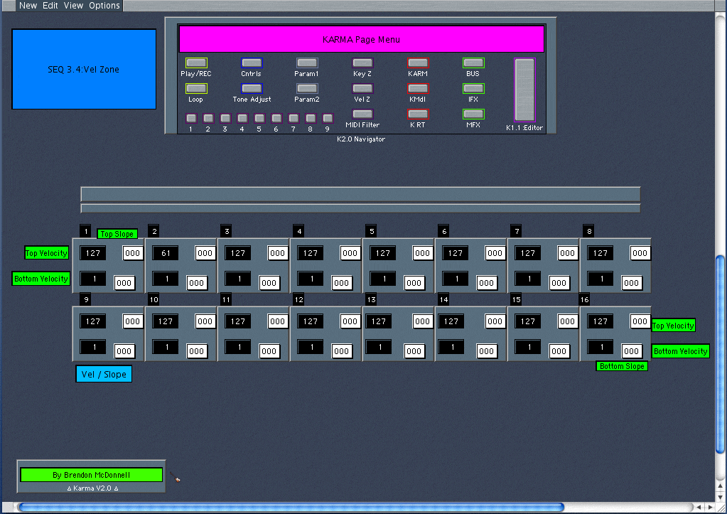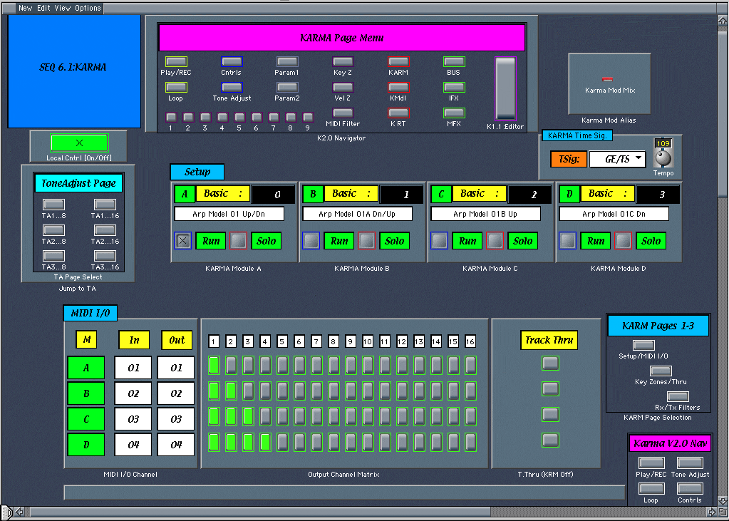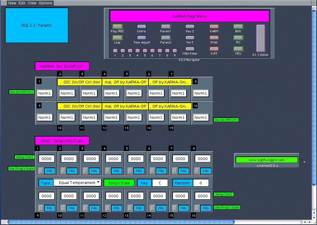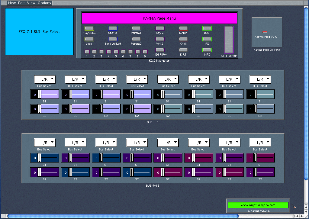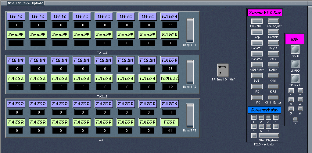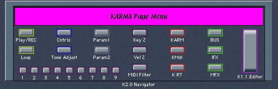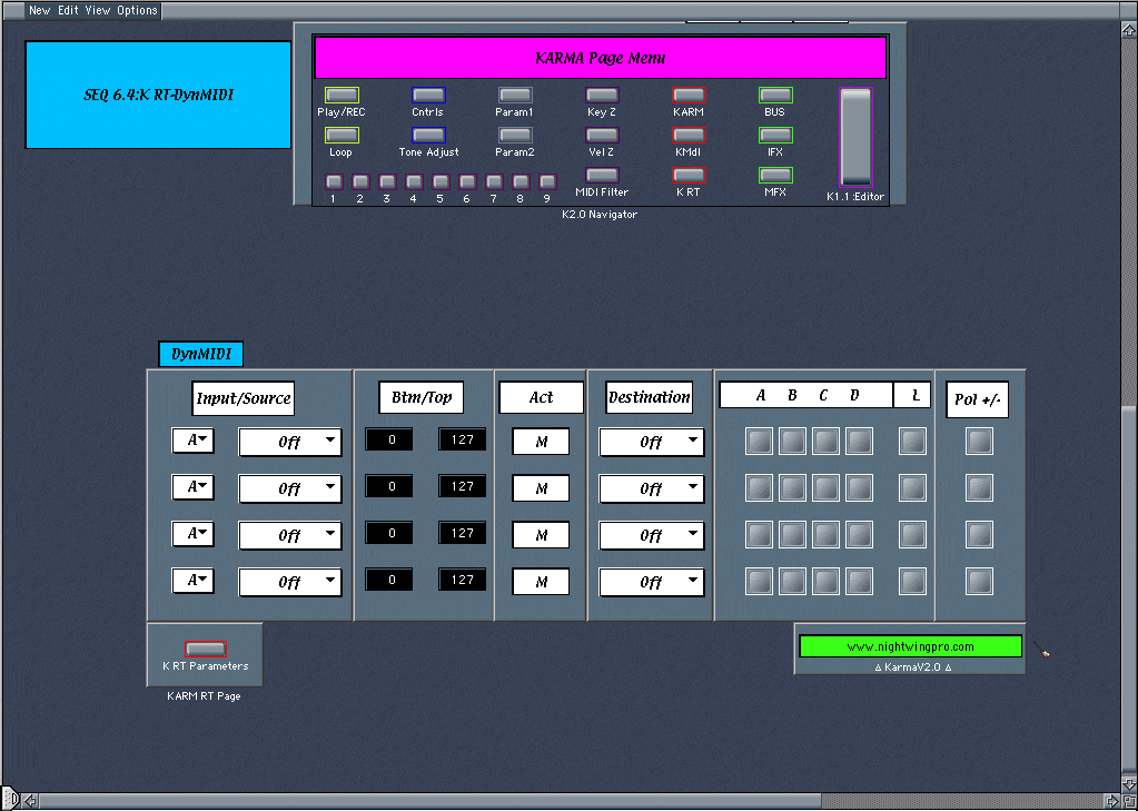 In LOGIC- Operating the Karma Environment controls will cause the Karma to respond immediately, as if you had adjusted that control on the Karma itself. Because Logic is a powerful sequencer, any change you make to the Karma Environment can be recorded as part of your sequence while at the same time causing the Karma workstation to respond. You are therefore automating your Karma from within Logic...Use the controls to tweak it until its perfect without touching the Karma itself.