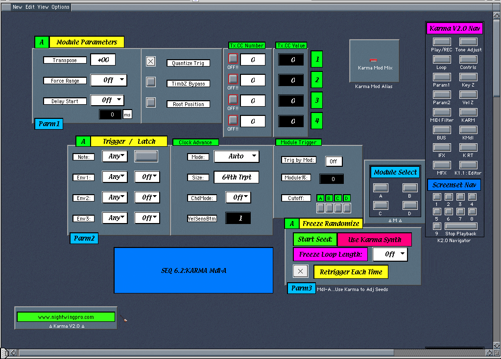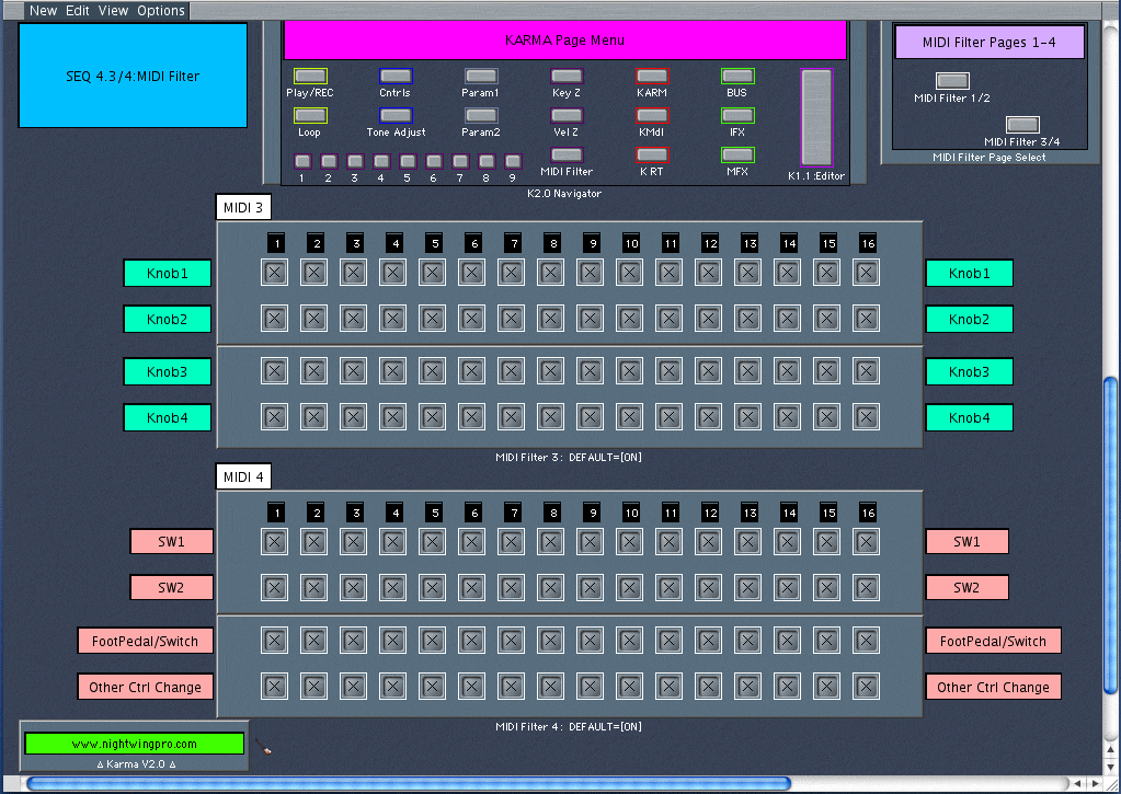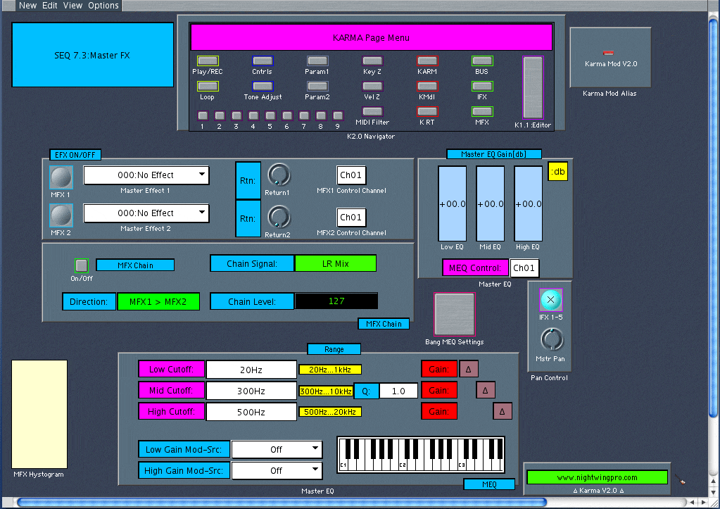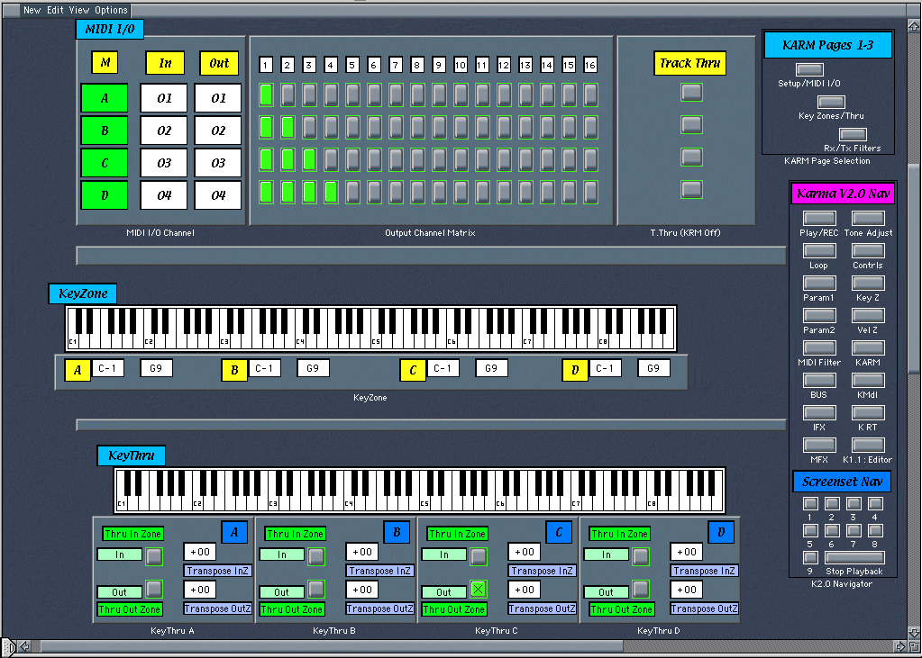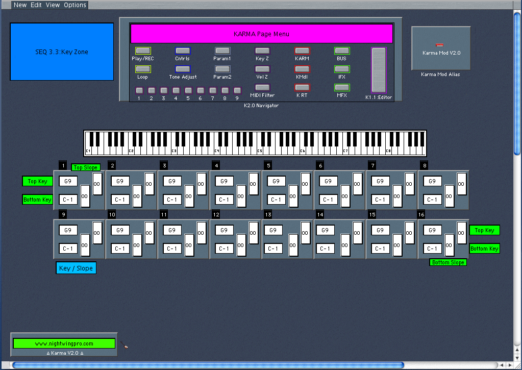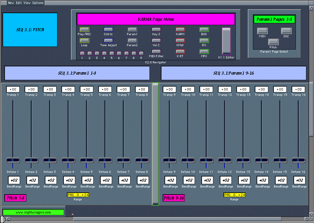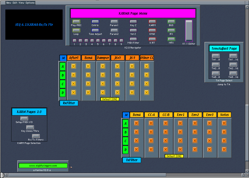 In LOGIC- Operating the Karma Environment controls will cause the Karma to respond immediately, as if you had adjusted that control on the Karma itself. Because Logic is a powerful sequencer, any change you make to the Karma Environment can be recorded as part of your sequence while at the same time causing the Karma workstation to respond. You are therefore automating your Karma from within Logic...Use the controls to tweak it until its perfect without touching the Karma itself.